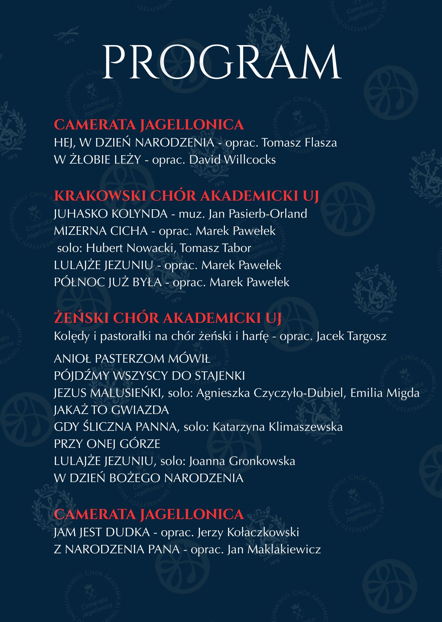 26 stycznia o godzinie 18.45 zapraszamy na koncert kolęd i pastorałek w wykonaniu chórów Uniwersytetu Jagiellońskiego.