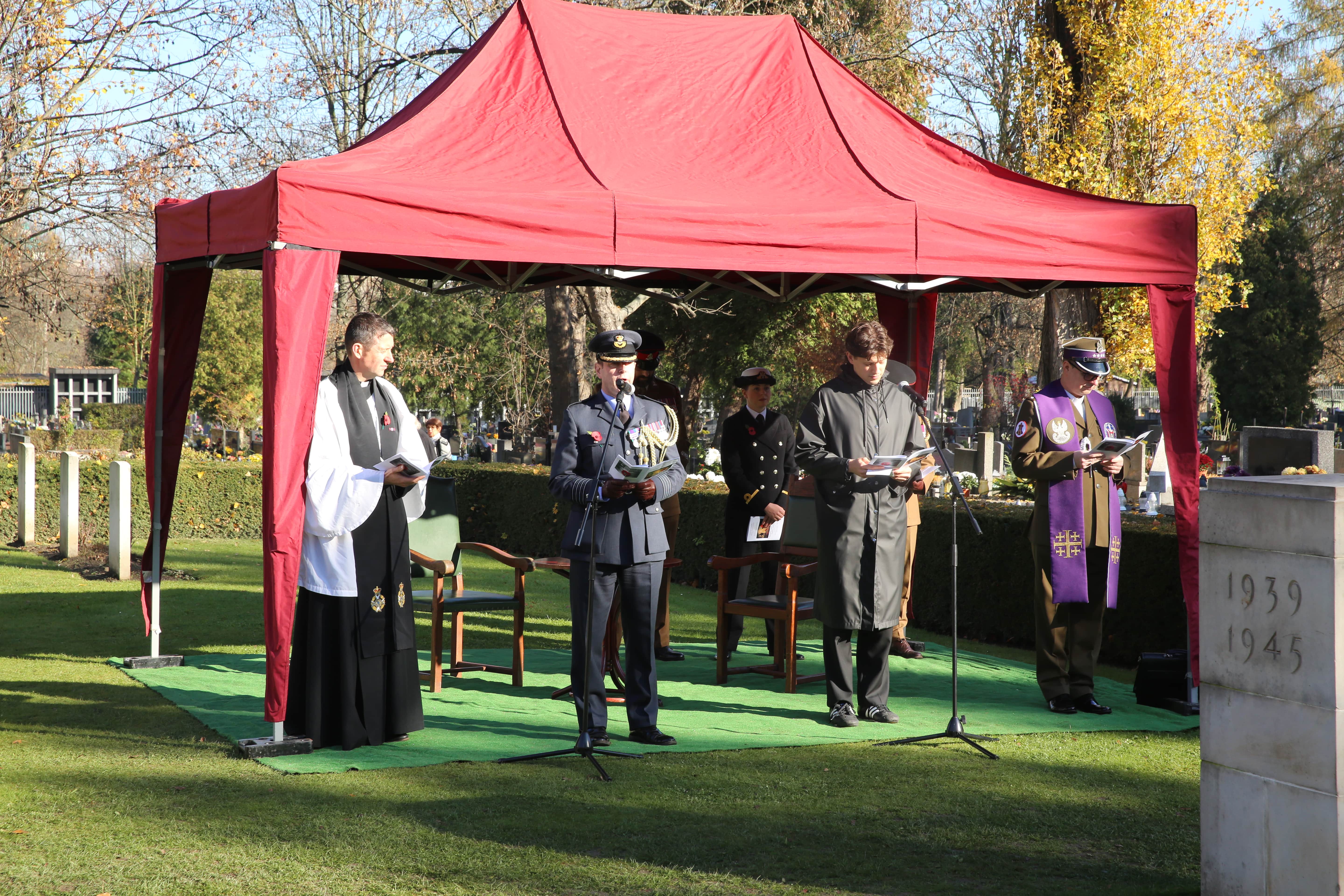 Po wspólnej modlitwie za poległych oraz w intencji pokoju na świecie nastąpiło złożenie wieńców oraz zniczy na grobach poległych. W uroczystości wzięli udział liczni przedstawiciele Armii Brytyjskiej, Wojska Polskiego, władz samorządowych, organizacji